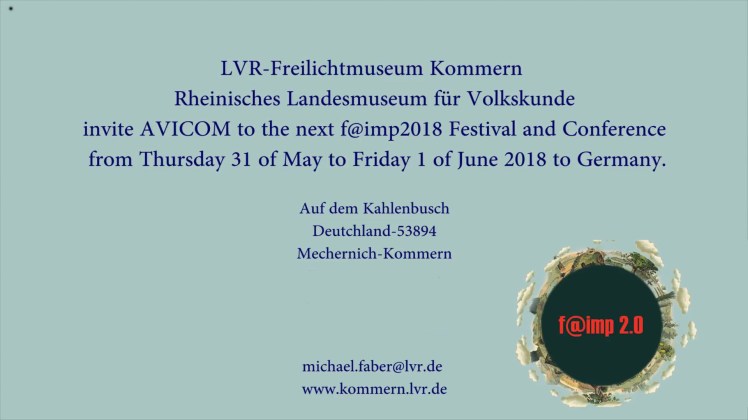 Todos los años desde 1996, el Comité Internacional del Audiovisual, Nuevas Tecnologías y Medios Sociales del ICOM (AVICOM) organiza f@imp 2.0, el Festival de Patrimonio Multimedia Audiovisual Internacional. En esta versión se efectuará, del 31 de mayo al 1 de junio, en Alemania.